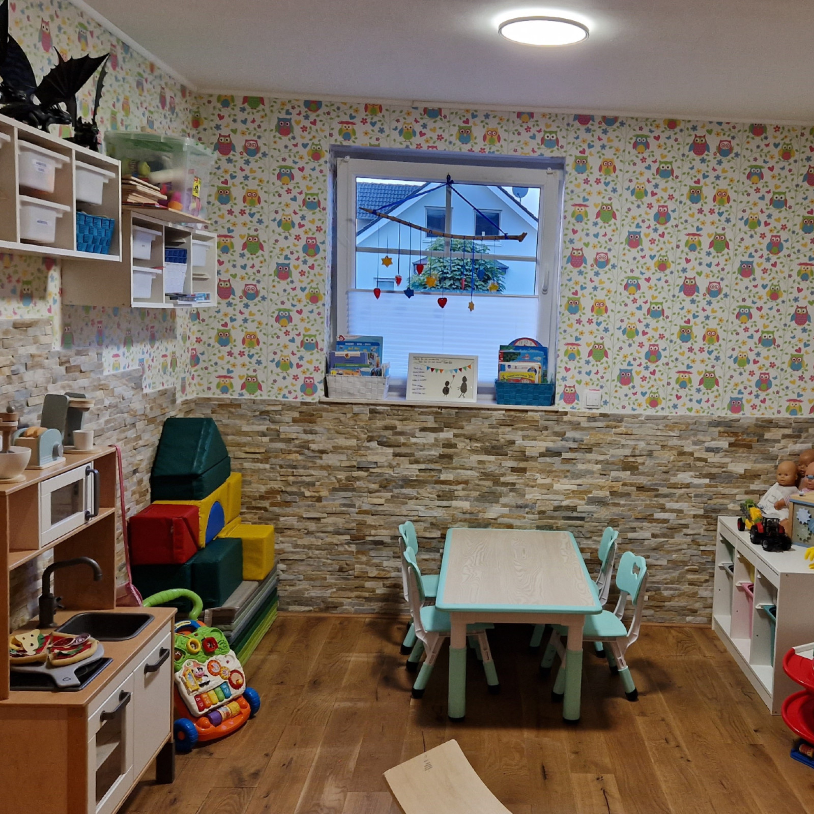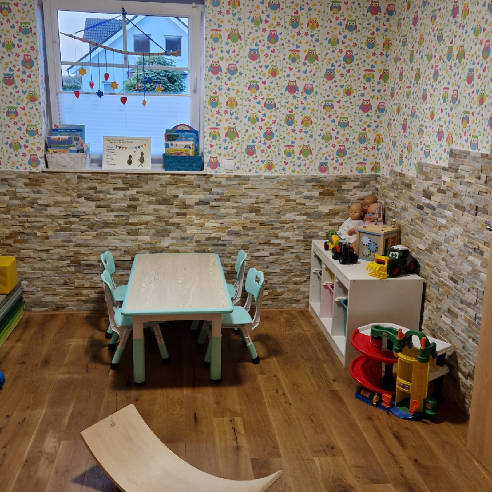Die Räume meiner Kindertagespflege bieten den Kindern viel Platz zum Toben, Spielen und Schlafen. Es steht ein liebevoll eingerichteter Raum mit einer Fläche von insgesamt 20 Quadratmetern für vielfältige Entdeckungen bereit. Die Kindertagespflege findet in meinem Zuhause statt. Die Einrichtung ist modern und mit der kindgerechten Ausstattung fühlen wir uns hier jeden Tag wohl. Sicherheit ist beim Spielen wichtig und so sind die Räume mit verschiedenen Features ausgestattet, die unbekümmertes Spielen ermöglichen.